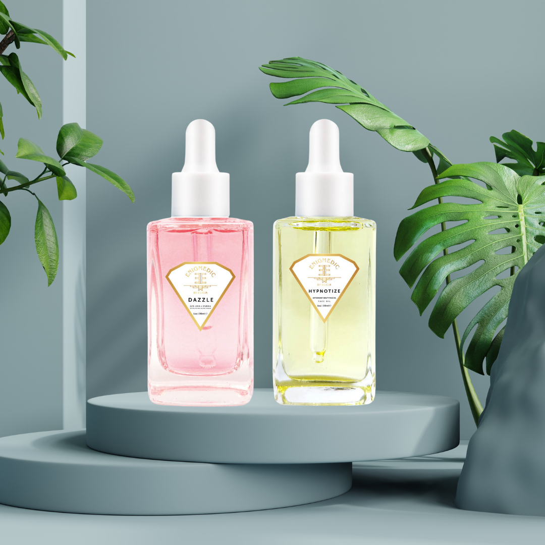 AHA and BHA exfoliants to treat imperfections such as hyperpigmentation flaky skin, build up and enlarged-clogged pores.